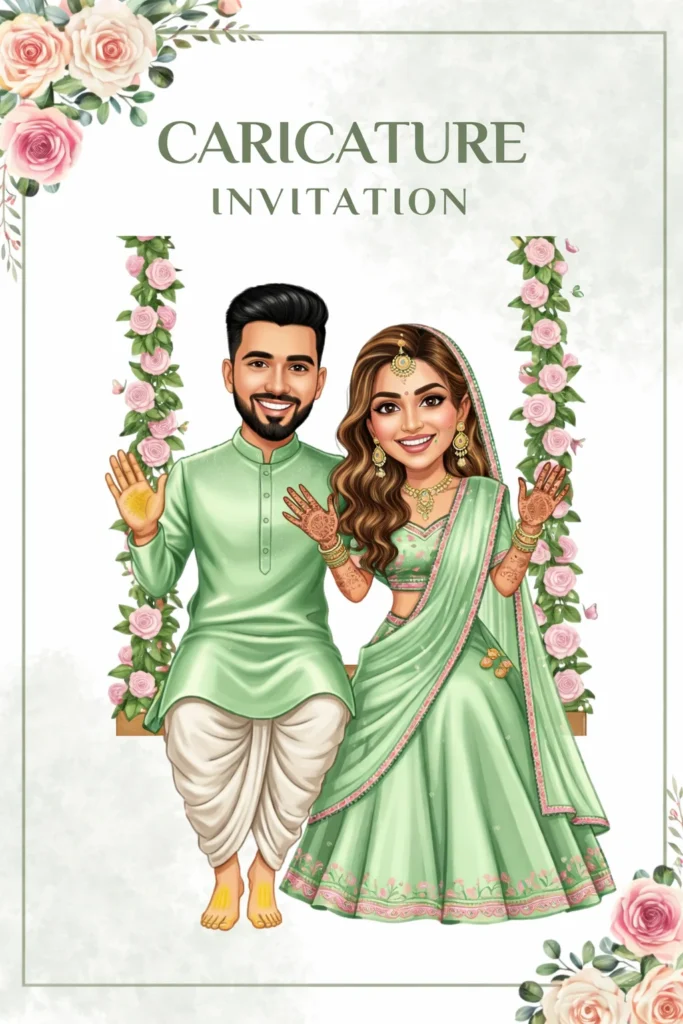 Luxury Digital Wedding Invitation and Caricature