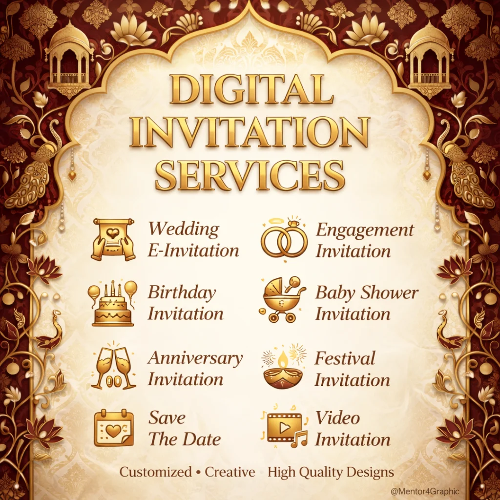 We bring your special moments to life with handcrafted digital invitations designed uniquely for your celebration.