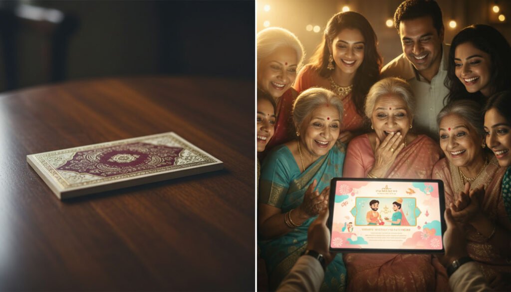 - Viral Reach & Convenience: With families and friends spread across the globe, a digital link via WhatsApp, email, or social media ensures instant, cost-effective, and eco-friendly delivery.